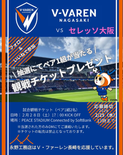 #観戦チケット#プレゼントキャンペーン#永野工務店#Vファーレ